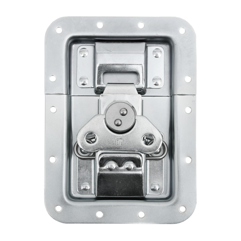 Nasze zamki motylowe V3, V4 i V5 posiadają opatentowany mechanizm sprężynowy, który unosi, podczas otwierania, haczyk blokujący i wysuwa go z zamknięcia. Przy zamykaniu haczyk blokujący automatycznie wraca na swoje miejsce. Zapewnia to wygodną obsług ę zamka oraz minimalizuje ryzyko skaleczeń lub uszkodzeń.