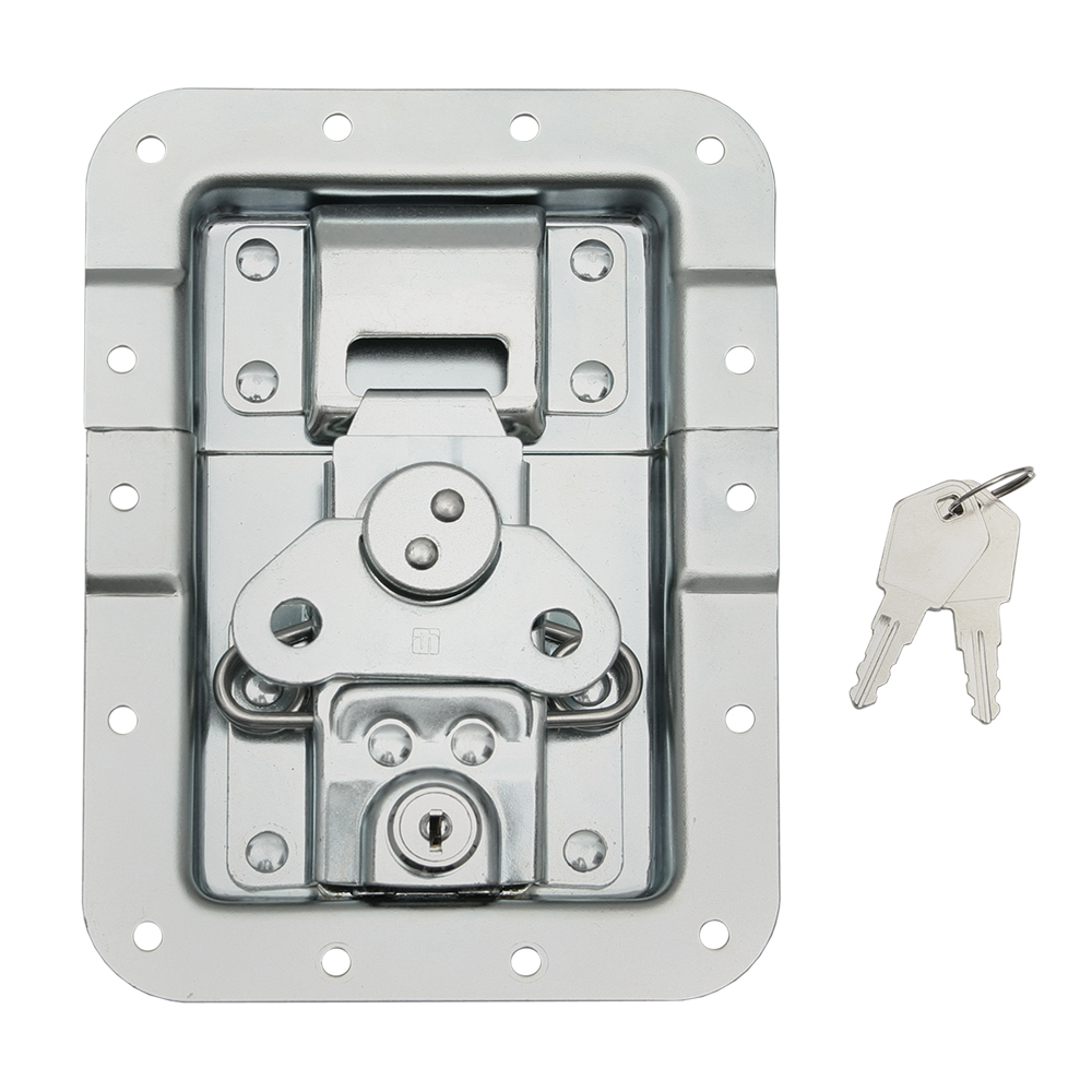 Nasze zamki motylowe V3, V4 i V5 posiadają opatentowany mechanizm sprężynowy, który unosi, podczas otwierania, haczyk blokujący i wysuwa go z zamknięcia. Przy zamykaniu haczyk blokujący automatycznie wraca na swoje miejsce. Zapewnia to wygodną obsług ę zamka oraz minimalizuje ryzyko skaleczeń lub uszkodzeń.