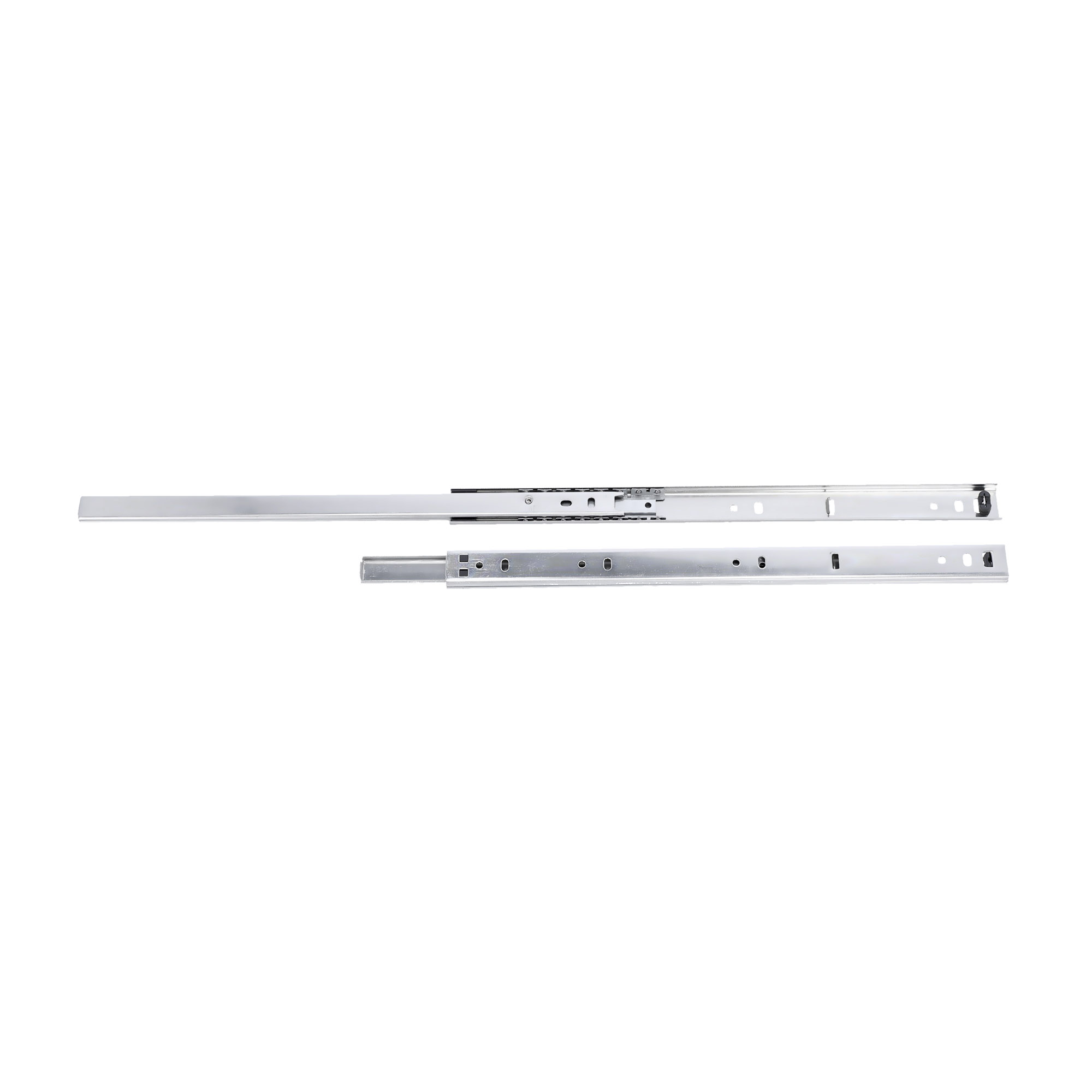 Precyzyjny pełny wysuw. Bardzo lekki, stabilny poprzecznie bieg. Z szybką szyną wewnętrzną do łatwego montażu. Stalowe koszyki na kulki, kulki z hartowanej stali.